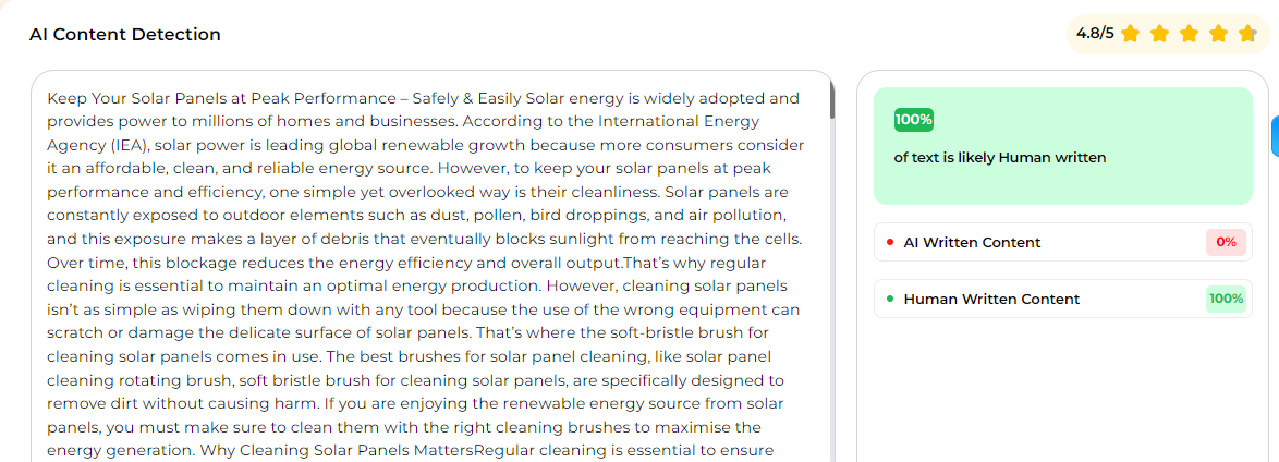 Electric solar panel cleaning brushes offer significant advantages over manual brushes in terms of efficiency, performance, convenience, versatility and cost-effectiveness. These factors make electric brushes a better choice for keeping solar panels clean and performing.